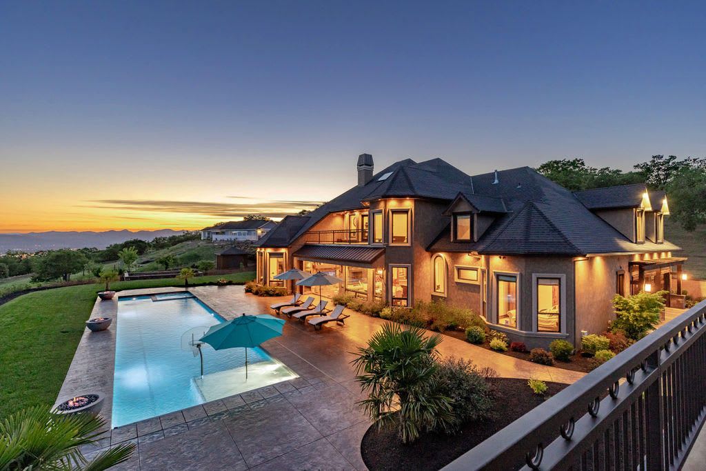 Our fave features: Koi pond with waterfalls; theaters media room with wet bar; stone wine cellar; two balconies overlooking the valley; yoga studio; gourmet kitchen; floor-to-ceiling stone fireplace; solid Alder doors.